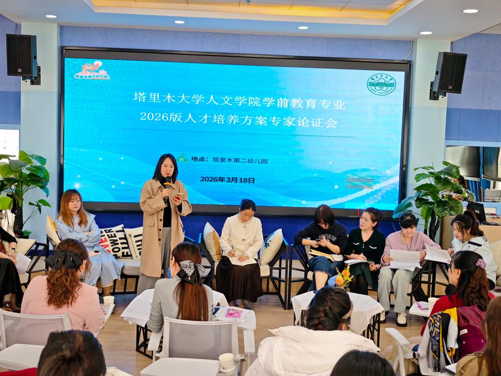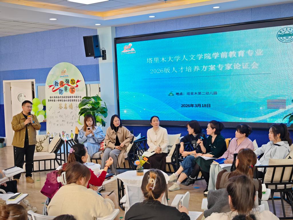 3月18日,塔里木大学人文学院学前教育专业2026版人才培养方案专家论证会在塔里木第二幼儿园顺利召开。本次会议旨在进一步优化人才培养模式,提升专业建设与行业需求的契合度。来自师市五所知名幼儿园的园长及骨干教师代表受邀参会,人文学院教育系党总支书记吴艳、教育系副主任张衡山及专业教师参加此次论证。