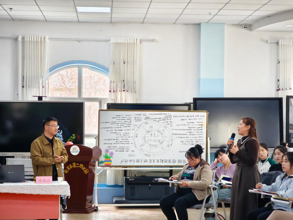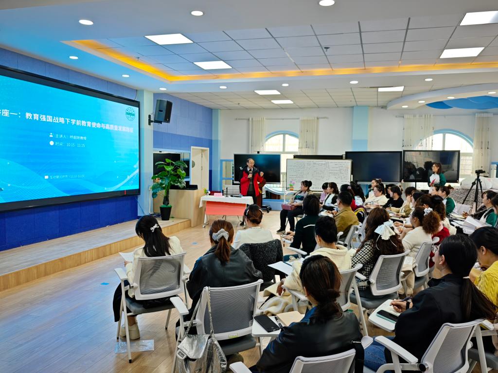 随后,张衡山同志围绕《幼儿园保育教育质量评估指南》进行了深入解读。基于此视角,针对保教质量提升策略提出了具体建议,不仅厘清了政策脉络,更通过详实的案例分析,为一线教师在评估实践中遇到的痛点、难点提供了科学的解决思路,充分展现了我院教育系教师在服务地方基础教育方面的专业引领能力。