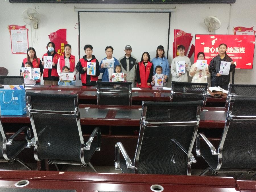 为强化青少年儿童铸牢中华民族共同体意识教育,人文学院汉语言文学2022级1班志愿者于11月4日来到阿拉尔市幸福路街道桃源社区开展“童心向党”主题绘画活动。
