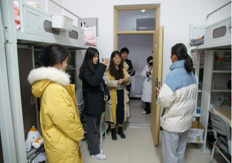 在评选过程中,评委老师们对各学生宿舍的文化内涵加