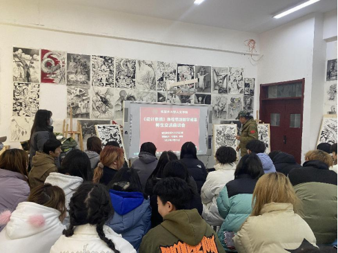 12月25日,人文学院艺术与教育系视觉传达23-1班举办《设计素描》课程思政教学成果师生交流座谈会,谈话中,赵会老师针对此次设计素描课程学生作品中的思政元素融入情况做了评价总结。银龄教师刘增宪教授对同学们作品中的胡杨精神表达给予了充分肯定。同学们表示,通过此次与老师的交流,在专业素养、个人信念、爱国精神等方面,都受到了进一步的启迪。