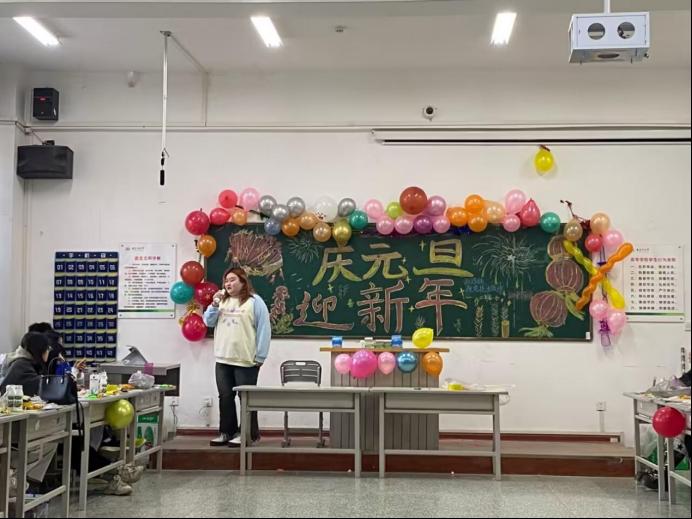为缓解同学们考试周的压力,丰富同学们的课余活动。2024年1月1日,人文学院视觉传达设计专业全体师生在新文科楼233室共同举办“庆元旦 迎新年”民族团结一家亲晚会,共同庆祝新年的到来。