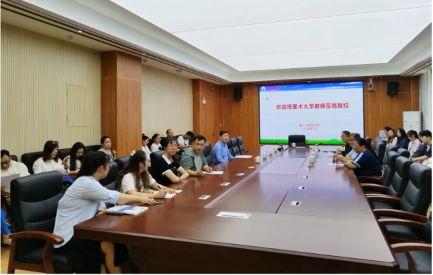 在欢迎会上,第一师高级中学党委委员、副校长黎正再同志代表学校对塔里木大学人文学院师生表示欢迎。黎副校长介绍了学校的基本情况、办学理念和办学特色,希望各位见习老师能以谦虚细致、脚踏实地的态度对待见习工作,并在第一师高级中学优秀指导教师的带领下不断进步与成长。