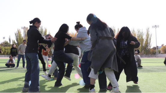 比赛现场气氛热烈,同学们在各项比赛中挥洒汗水,展现出团结协作、奋勇争先的青春风采。乒乓球接力赛考验默契,参赛的同学用筷子夹住乒乓球奋力奔跑,摸索出独特的制胜之道;踩气球比赛节奏起伏,各队成员集思广益,共谋最优取胜路径;喊数抱团比赛中凝聚着团队的信任与配合,同学们互相配合,团队胜利后的欢呼与鼓励声此起彼伏。