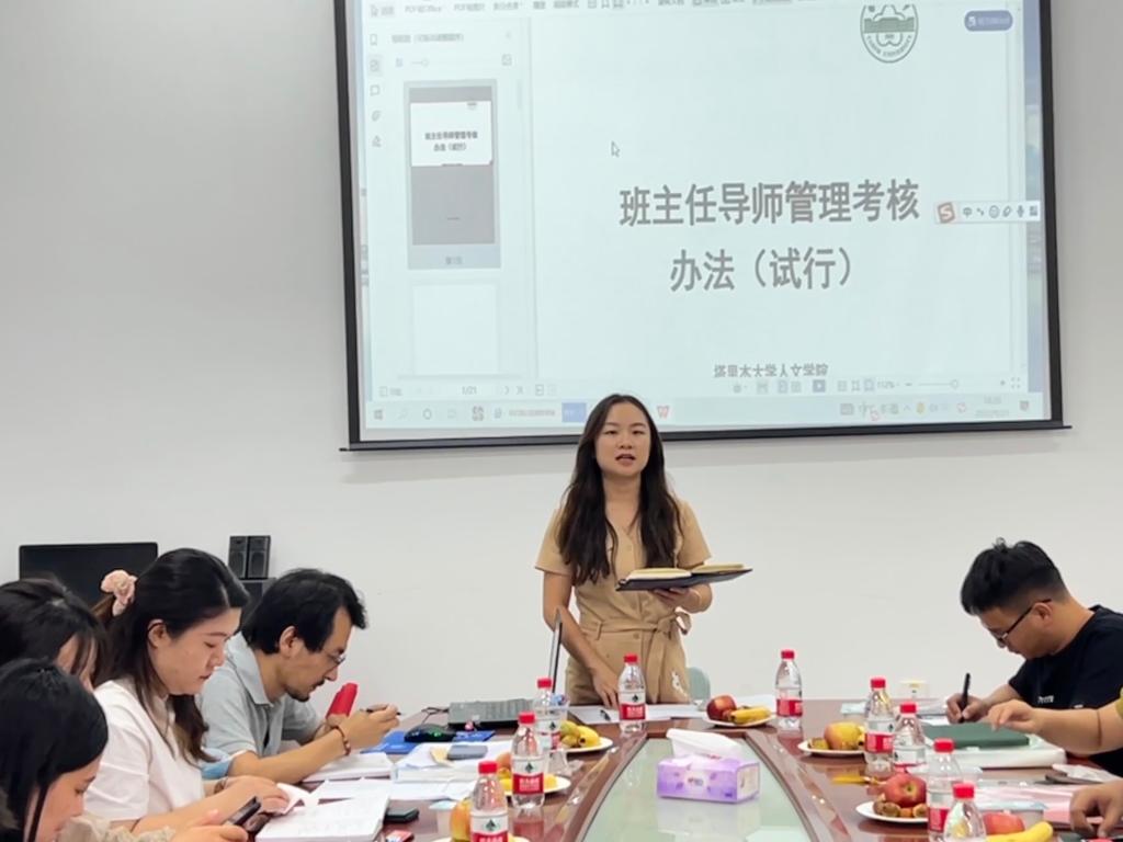 9月21日,人文学院2022年班主任导师系列培训开班。本次培训贯穿整学期,针对不同年级班主任进行专题培训,旨在推进班主任导师队伍专业化建设,全面提升学生管理队伍的专业能力。学院党委副书记马彩云、中文系总支书记屈玉丽、传媒系总支书记肖军、外语系总支书记孙丽萍、艺术与教育系总支书记吴艳、预科系副主任蒲晓华出席开班仪式,全体2022级新生班主任参加,开班仪式由学生办公室副主任吴垠主持。