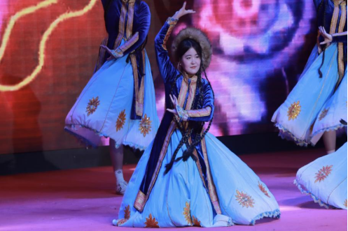 在主持人的报幕中,同学们精心准备的节目一一登场亮相,《我们的明天》《如愿》等歌曲或悠扬婉转,或激扬高亢,一首首动听的旋律回荡在会场,每个音符仿佛诉说着同学们对未来的美好向往。《韵悟》《幻想童话》等舞蹈表演,通过高难度的动作和整齐的舞步,展现出无限的青春活力。民族舞蹈《白马》《我的都塔尔》给来自天南海北的同学们展现了大美新疆独特的一面,拉近了各民族同学们的距离。走秀《Fasion Forward》展现出塔大学子的精神风貌。最后,晚会在全体同学齐声高唱《光荣塔大》中落下帷幕。