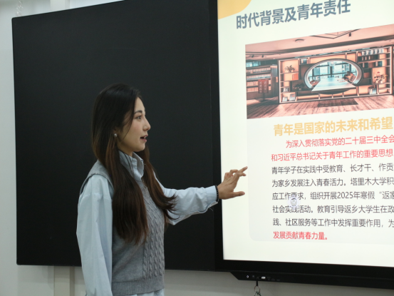 为充分展示人文学院学生寒假“返家乡”社会实践活动的丰硕成果,并进一步激发青年学子在未来积极投身社会实践、锻炼成长的热情,塔里木大学人文学院于3月2日晚在逸夫楼的205、208、210教室隆重举行了寒假“返家乡”社会实践活动结项答辩。