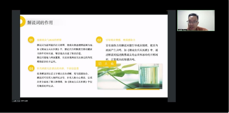 2025年4月25日,人文学院邀请兵团广播电视台资深编导刘磊,通过腾讯会议为广播电视学2022级学生、新闻与传播2024级专业硕士研究生开展专题讲座,系统讲授纪录片解说词创作技巧。