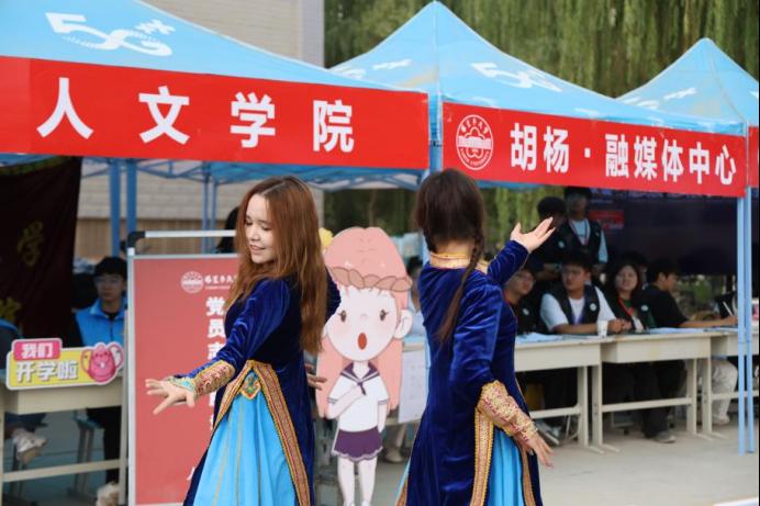 学院还安排艺术团的同学在迎新现场带来精彩的民族舞蹈表演。展示中华优秀传统文化魅力的同时也传递了学院对新生的热忱欢迎,吸引了众多新生及家长驻足欣赏,成为迎新现场一道亮丽的风景线。